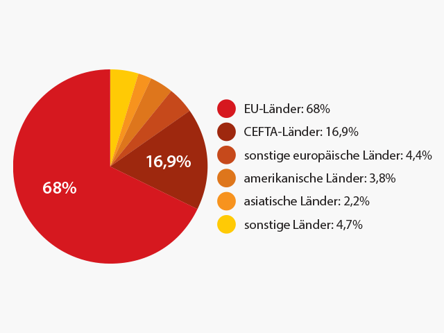 Ganz hoch oben standen im Jahr 2021 die Exporte der Lebensmittelindustrie (9,5%), Elektroausrüstung (9,4%), Metallfertigprodukte (8%), Maschinen und Geräte (6,9%), chemische Produkte (6,9%), pharmazeutische Produkte (6,6%), Koks und Erdölprodukte (6%), Holz und Holzprodukte (5,9%), Metall (5,2%), Kleidung (4,6%), Kraftfahrzeuge (4,1%), Gummi- und Kunststoffprodukte (4%), Mineralprodukte (3,9%), Computer und Computerausrüstung (3,7%), Leder (2,8%), Papier (2,3%), Möbel (1,8%), Textil (1,2%), Getränke (1,1%) und Tabakwaren (1%).