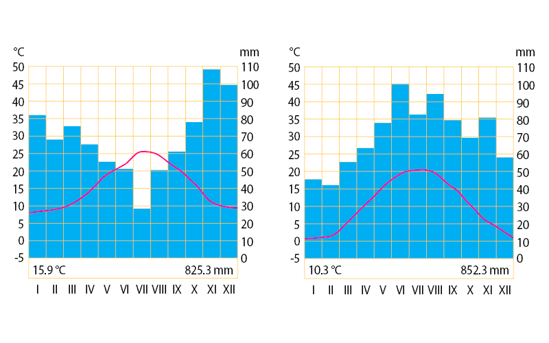 スプリト測候所とザグレブ測候所の雨温図