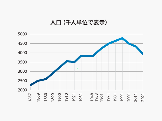 過去160年、いくつかの要因が人口開発に影響を与えてきた。その中で最も重要なのは、常態化し時おり激しくなるヨーロッパや他の海外の国への移住、二度の世界大戦と祖国戦争である。