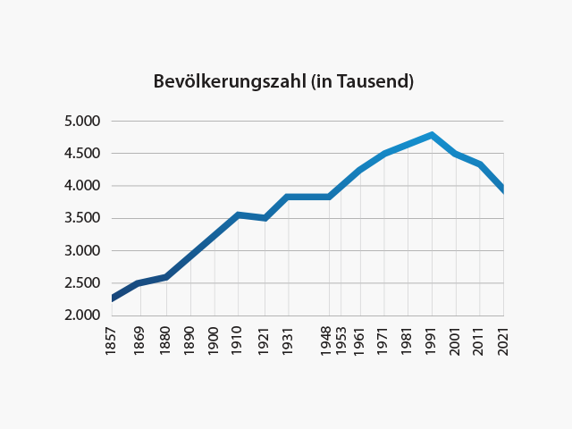 Ein rascheres Bevölkerungswachstum im Zeitraum von 1960 bis 1980 wurde jedoch durch eine verringerte natürliche Bevölkerungsveränderung verzögert, die im direkten Zusammenhang zu der negativen Geburtenrate und der verstärkten Auswanderung der Menschen auf der Suche nach der "Gastarbeit" im Ausland stand. Unter diesen Bedingungen erlebte die Bevölkerung Kroatiens eine beschleunigte demografische Transition. Bereits die späten 1980er Jahre wurden von einer niedrigen Rate der natürlichen Bevölkerungsentwicklung geprägt, die keineswegs dem wirtschaftlichen Entwicklungsgrad entsprach. Mit einer derart geschwächten Basis der (vor allem reproduktiven) Bevölkerung machte Kroatien in den 1990er Jahren einen weiteren Krieg und eine wirtschaftlich unsichere, prekäre Nachkriegszeit durch. All das hatte den dritten Rückgang der Bevölkerungszahl an der Wende vom 20. zum 21. Jahrhundert zur Folge. Das verstärkte sich durch die Auswanderung nach dem Beitritt Kroatiens zur Europäischen Union, zumeist nach Deutschland, Irland und Österreich. Laut der Volkszählung von 2021 leben etwa 3,9 Millionen Menschen im Lande, mit einer Bevölkerungsdichte von 68 Einwohnern/km².