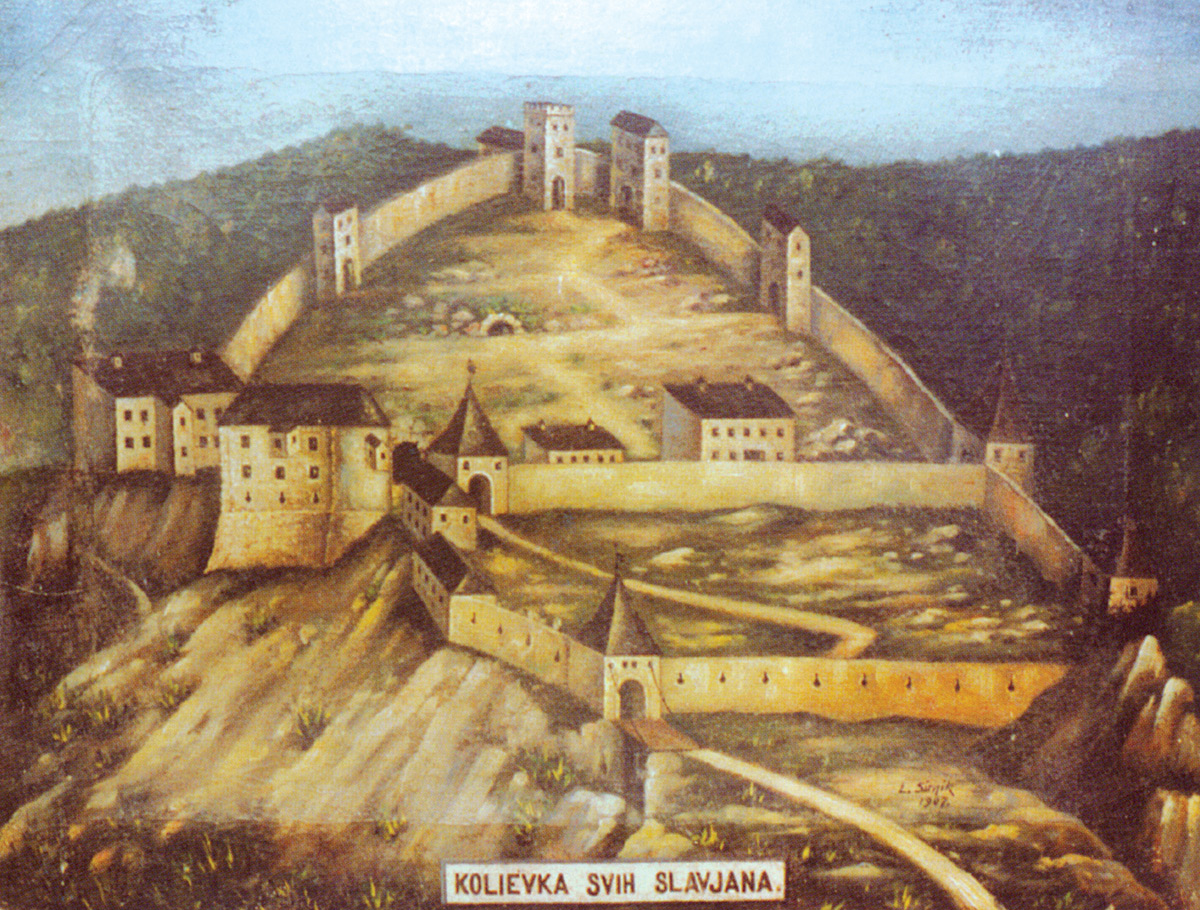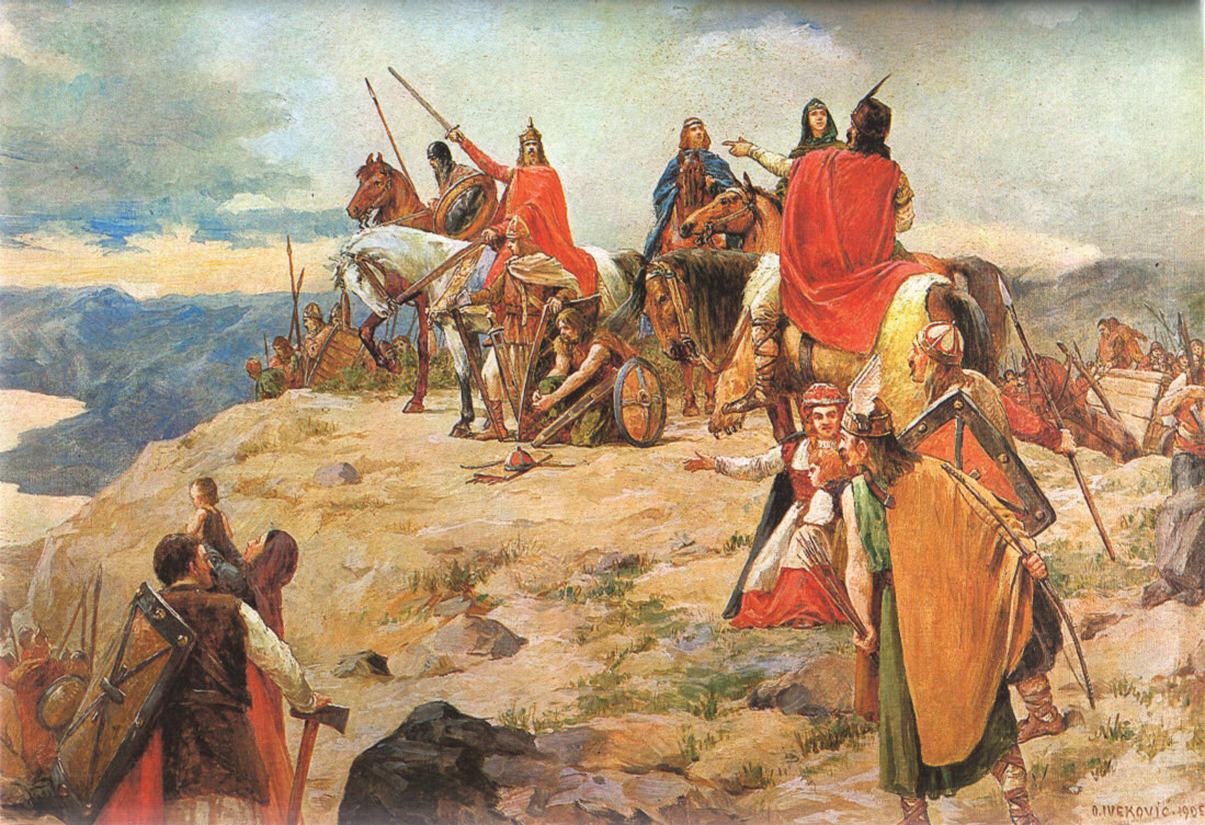 La leyenda sobre la migración Según esa leyenda los croatas migraron liderados por cinco hermanos (Klukas, Lobel, Muhlo, Kosjenc y Hrvat) y dos hermanas (Tuga y Buga) desde Croacia Blanca al norte de los Cárpatos. (Oton Iveković: La llegada de los croatas, 1905)La leyenda de Krapina En tres fortificaciones sobre Krapina vivían los hermanos Čeh, Leh, Meh y su hermana Vilina. Los hermanos querían liberarse del dominio extranjero, pero la hermana los traicionó y se fugaron al norte, donde fundaron los Estados eslavos: Chequia, Polonia y Rusia. (Lovro Sirnik: Krapinski grad, 1907)Knin. Desde el gobierno de los Trpimirović Knin era la sede ocasional de los gobernadores croatas, y en la época del rey Dmitar Zvonimir la capital permanente del Reino Croata. Desde el siglo XII hasta el siglo XIV en Knin y Zagreb se alternaban el herceg (duque) y el ban (gobernador), y el sabor (parlamento) tenía sus sesiones.