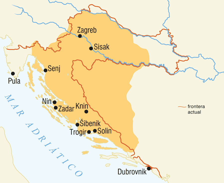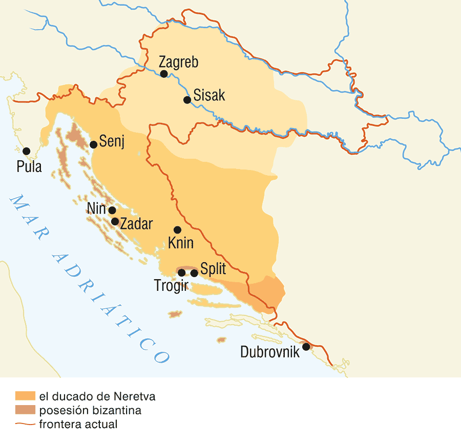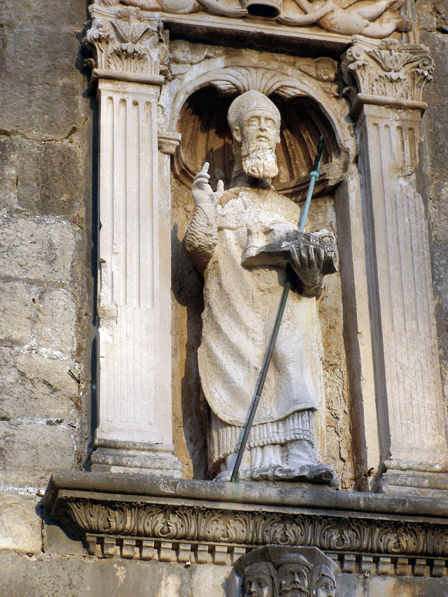 El obispo de la ciudad de Sebaste y mártir cristiano San Blas (mediados del siglo III – alrededor de 316), santo protector de la ciudad de Dubrovnik desde 1190. Dubrovnik se desarrolló de una aldea pescadora a comienzos del siglo VII. Estuvo bajo el dominio bizantino, normando, veneciano (desde 1205) y del Reino Croata-Húngaro, y desde 1358 hasta 1808 fue república independiente aristocrática. Hizo comercio en el Mediterráneo, el Levante y los Balcanes.El Reino de Croacia en el siglo XIEl ataúd de San Simón. El ataúd con las reliquias de San Simón en el altar principal de la iglesia de mismo nombre de Zadar, obra del maestro Francisco de Milán en 1380. Esta obra cumbre de orfebrería gótica representa los principales acontecimientos y personalidades del siglo XIV, la vida cotidiana de Zadar y vistas de algunas partes de la ciudad.