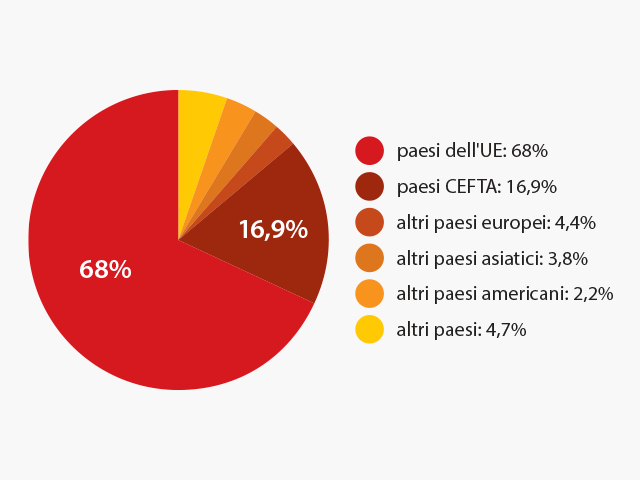 Nelle relazioni commerciali con l'estero, la Croazia registra una crescita costante sia nelle importazioni che nelle esportazioni, ma importa più prodotti di quanti ne esporti, con un tasso di copertura variabile delle importazioni con le esportazioni. Nel 2022 sono stati esportati prodotti per un valore di 24 miliardi di euro e importati per un totale di quasi 42 miliardi di euro (copertura del 58% delle importazioni con le esportazioni). I partner commerciali più importanti sono l'Italia, l'Ungheria, la Germania e la Slovenia, mentre al di fuori dell'UE la Bosnia ed Erzegovina, gli Stati Uniti e la Serbia.