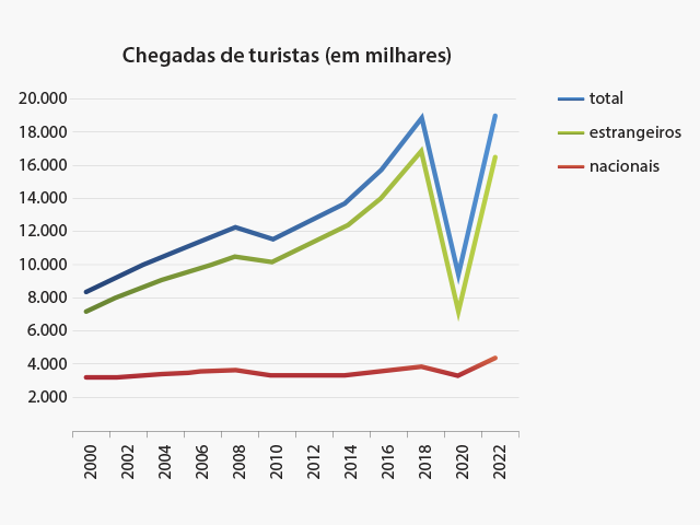 Chegadas de turistas 2000 – 2022